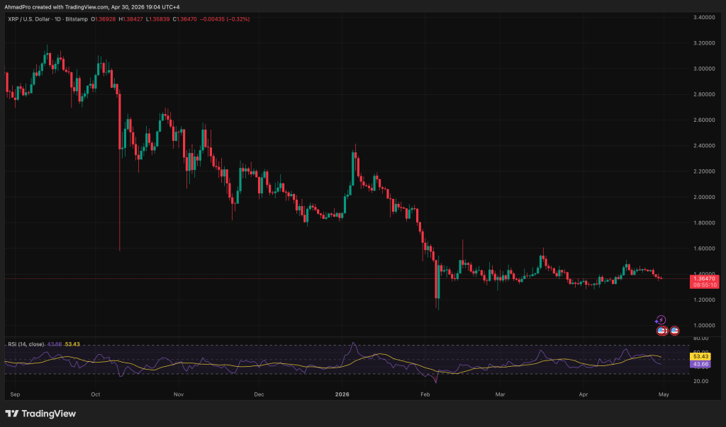 On the downside, $1.30 is acting as the immediate support holding the range together. As long as XRP price stays above it, the setup remains constructive. Below that, $1.25 becomes the critical level. Losing it would confirm weakness and likely extend the move lower.