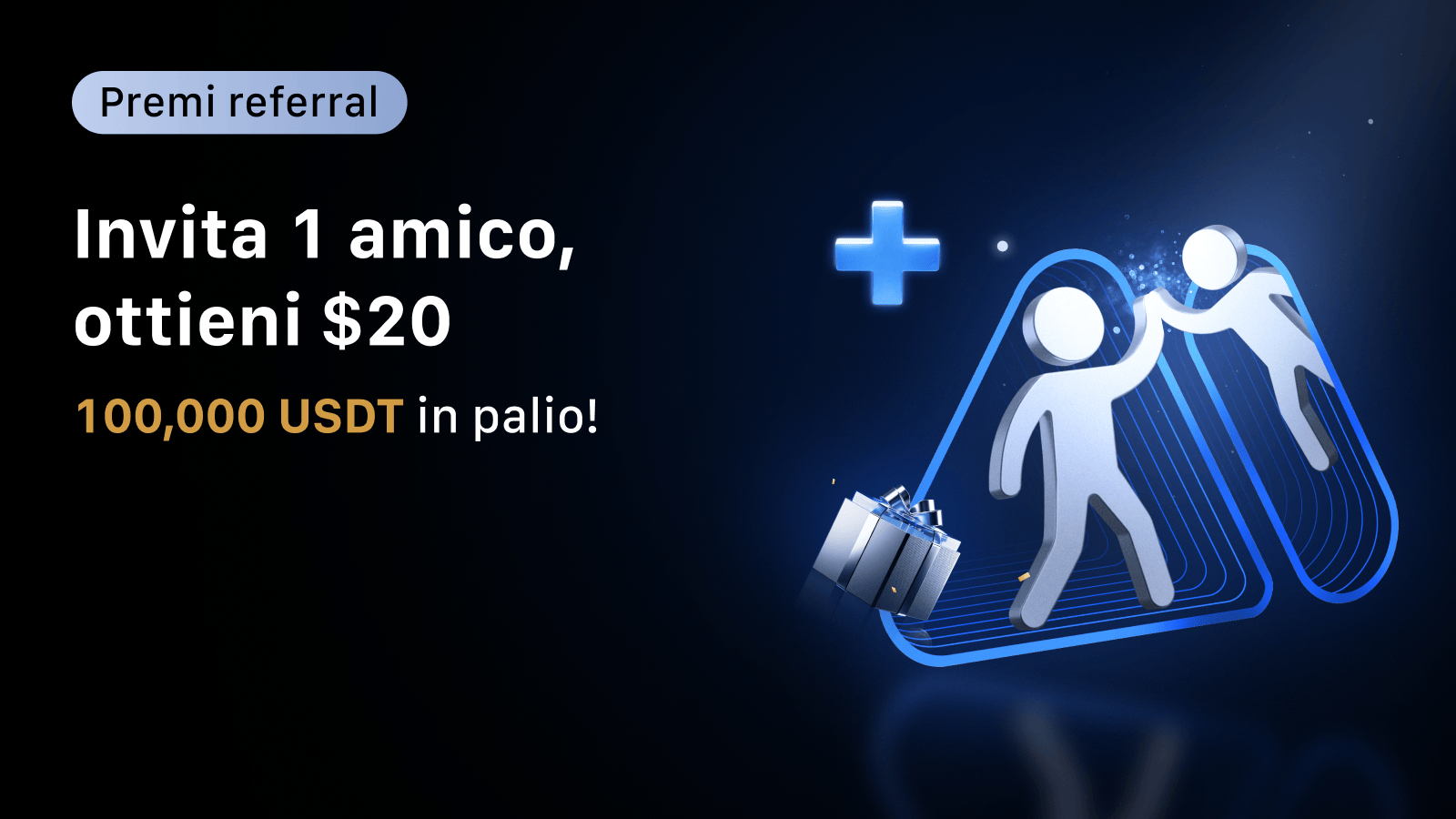 Partecipa al programma referral MEXC: invita i tuoi amici a iscriversi e a fare trading e riceverete entrambi un bonus di 20 USDT in futures!