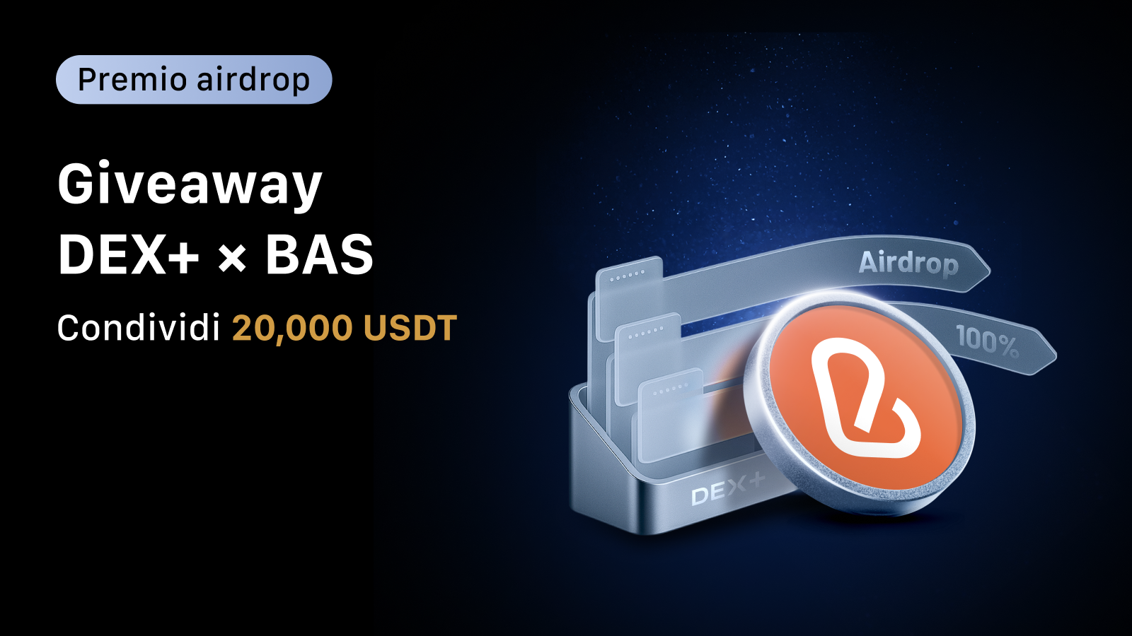 MEXC DEX+ e BAS stanno compiendo un importante passo avanti nella creazione di un ecosistema di identità decentralizzato. Per premiare i nuovi utenti, stiamo lanciando un giveaway a tempo limitato con un montepremi di 20.000 USDT: non perdere l'opportunità di richiedere la tua quota!