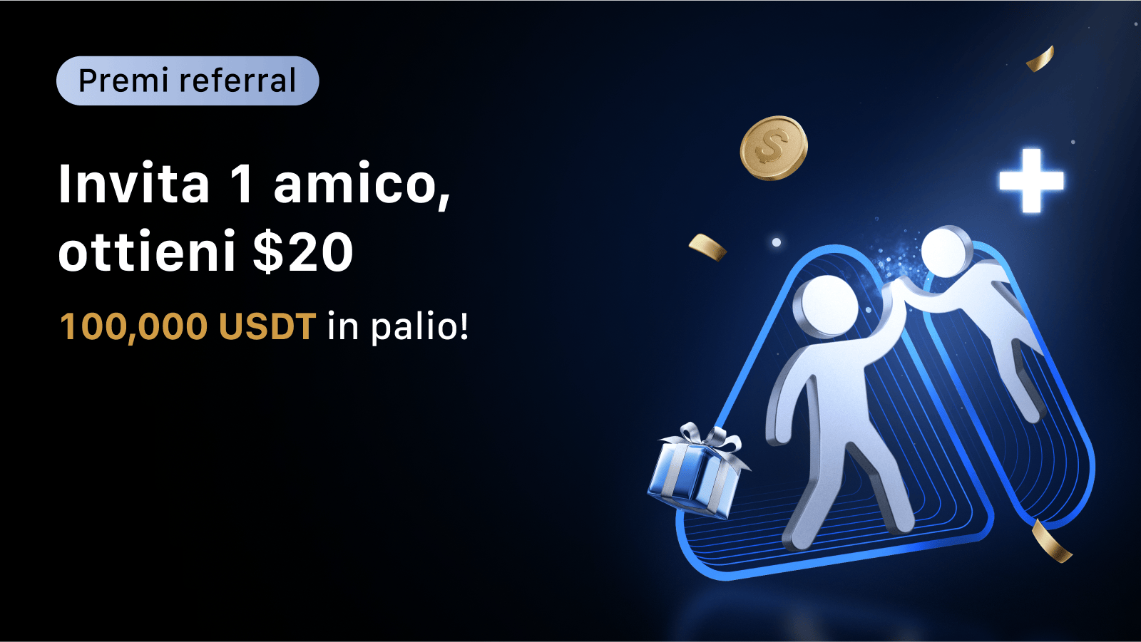 Partecipa al programma referral MEXC: invita i tuoi amici a iscriversi e a fare trading e riceverete entrambi un bonus di 20 USDT in futures!