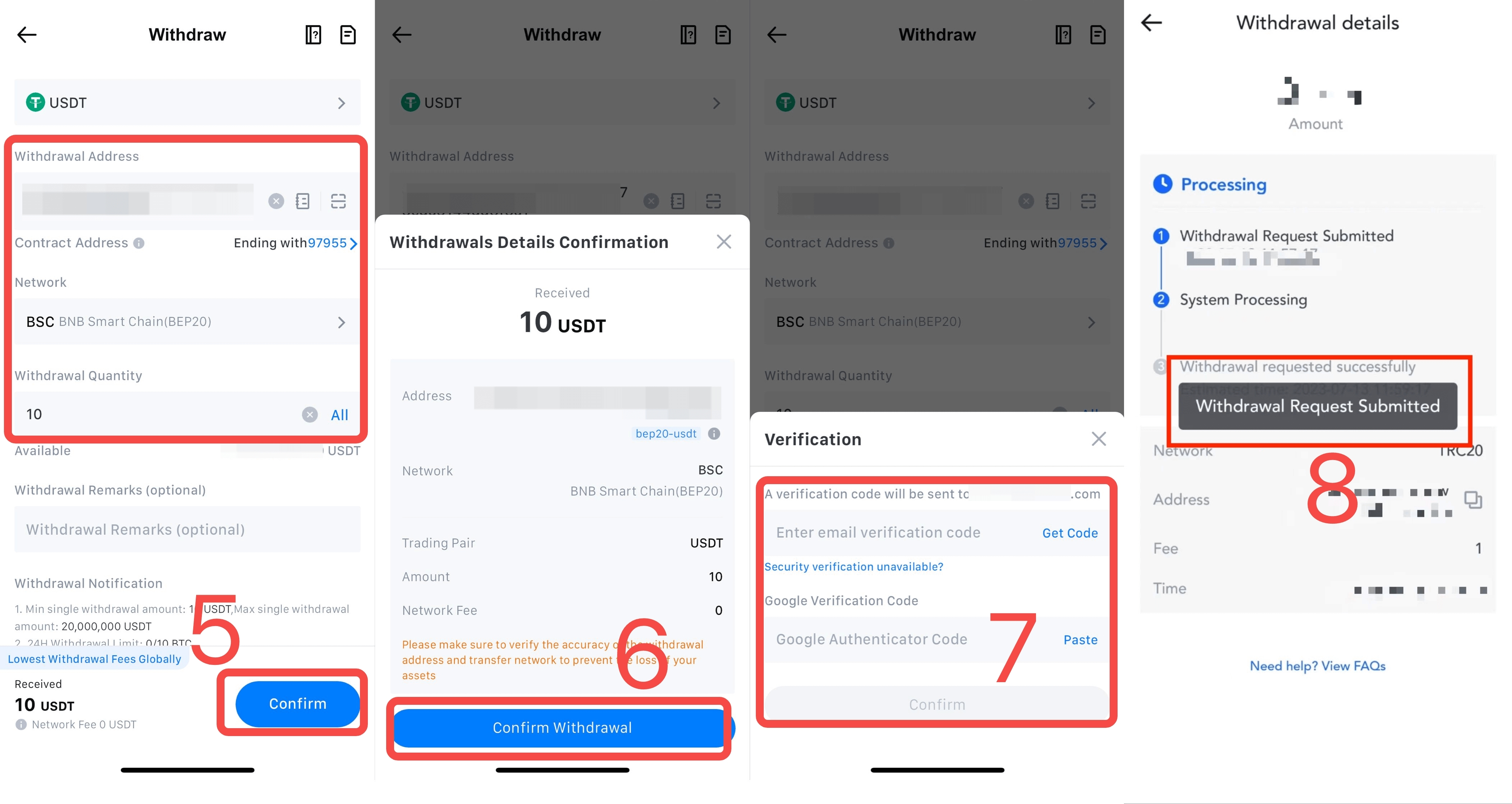 7) Inserisci il codice di verifica e-mail e il codice Google Authenticator, quindi fai tap su [Conferma].