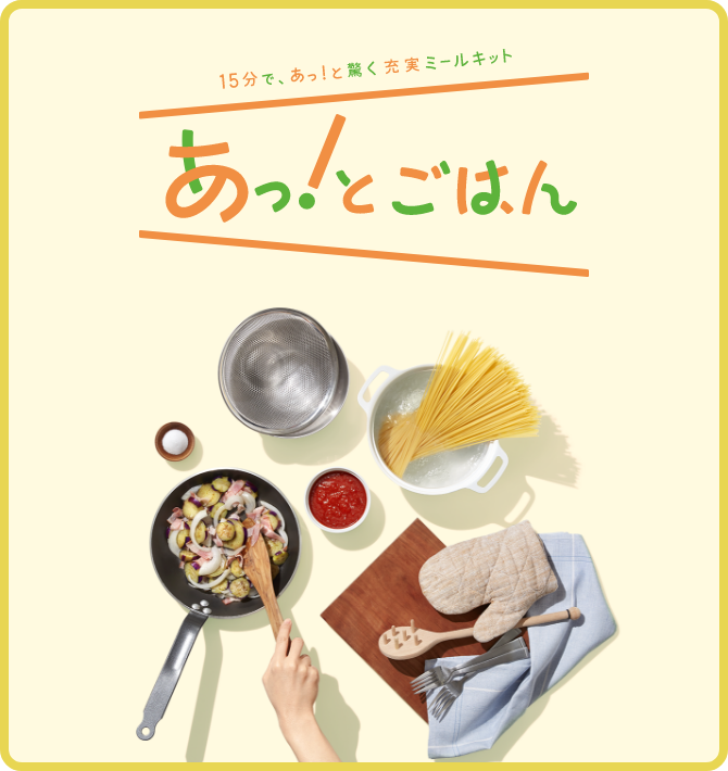 ワタミの「あっ!とごはん」は、卵すら用意したくないほど買い物に行きたくない人におすすめ。届く食材はカット済みのものとそうではないものがありますが、卵までキットに入っています。料金も高すぎず、5食分と送料の合計は5,900円です。レシピに火加減と加熱時間が記載されていてわかりやすく、選べるメニューも日替わりメニューと週替わりメニューがあり豊富な印象。しかし、自分でメニューを選べない点に注意しましょう。また、調理に手間がかかる点もネック。多くのメニューで包丁やフライパン・鍋が必要です。冷蔵タイプなので、消費期限が届いた当日または1日後と短い点も押さえておきましょう。注文はWEBから行い、初回に配達時間の指定が可能。置き配を利用でき、定期購入なら無制限で休止もできますよ。量の満足度も悪くなく、メニューによっては大食いな人でも満足できるほどのボリュームがありました。試食した料理専門家からは「ハンバーグが大きく、食べごたえがある」との声が。野菜の量も悪くなく、注文したメニューの平均は112.5gありました。一方、味つけが薄めでおいしさの評価は伸び悩む結果に。ハンバーグを食べた料理専門家からは「肉の旨みも食感も調味料の味でぼやけて、肉々しさが感じられない」という意見が挙がりました。とはいえ、忙しくて買い物に行く暇がない人は選択肢に入れてもよいでしょう。