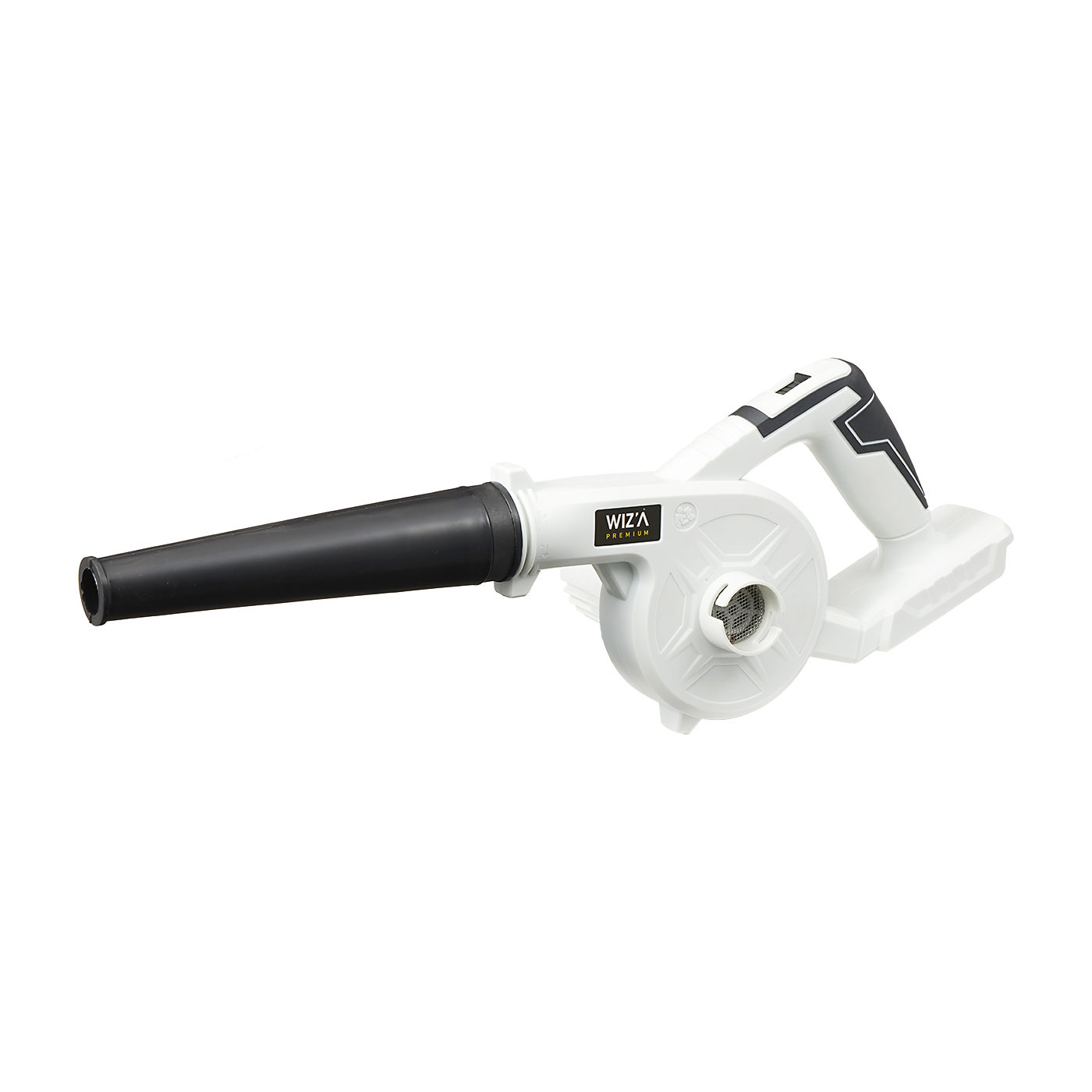 ビバホームやムサシなど、国内にホームセンターを展開するアークランズのオリジナルブランド「WIZ’A」の「充電式ブロワー」。電圧は18Vで、同ブランドの電動工具と共用できます。最大風速は約17.3m/sと少し物足りないものの、風はまずまずの広がり具合。風速は2段階で調節可能です。トリガーではなくスイッチで風速を調節するタイプなので、トリガーを押し続ける必要がなく連続した作業もラクに行えます。バッテリー搭載時の重量は約1.42kgとかなり軽量で、片手で持ち上げて車の上部を乾かす作業もラクに行える印象でした。ノズルは約22cmと標準的な長さで、車のルーフやボンネットの奥の方には届かないので、周囲を移動しながら乾かすことになるでしょう。バッテリーのもちは約13分と、普通車1台分の洗車の仕上げには物足りない結果に。集塵機能もついていますが、車内の清掃を洗車のついでに行うようなバッテリーの余裕はないでしょう。屋内に届く騒音値は約61.0dBで周波数も全体的に低く、テレビや会話とほぼ変わらない大きさ。屋内の人もそれほど気にならない稼動音です。