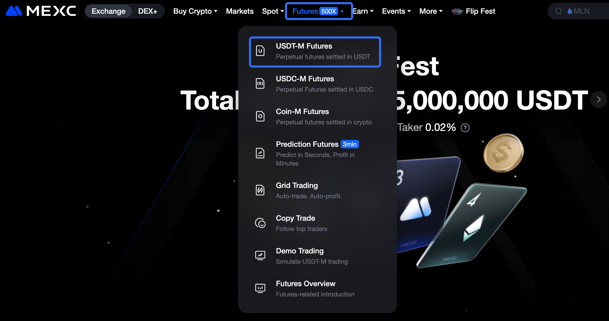 Open and log in to the official MEXC homepage, select "USDT-M futures" in the top navigation bar "futures trading".