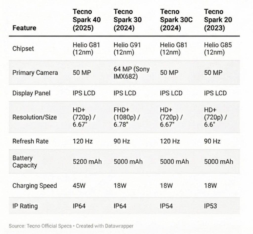 Tecno Spark 40 comparison with other Spark versions