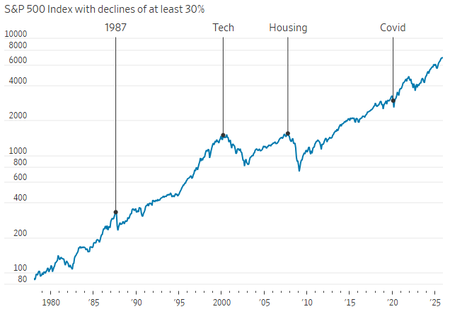 O último crash relevante ocorreu há pouco mais de seis anos, durante o choque inicial da pandemia de Covid-19, quando o mercado acionário despencou em questão de semanas. Apesar disso, analistas destacam que o intervalo entre grandes quedas não segue um padrão fixo, e eventos extremos podem ocorrer em sequência.