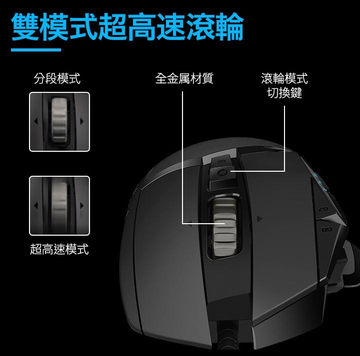 ▲滾輪有2種模式可選,並且可用實體鍵來切換。