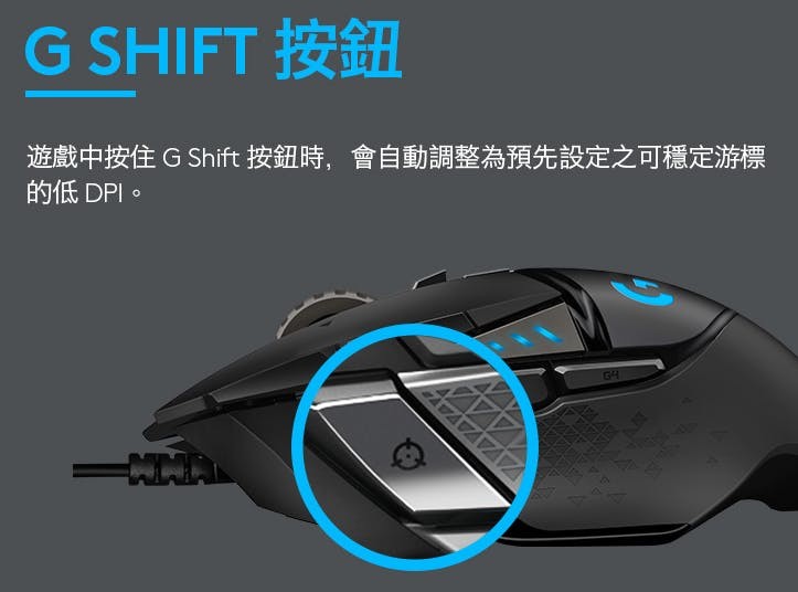 ▲特殊的G Shift按鍵讓你玩射擊遊戲快速降為低DPI。