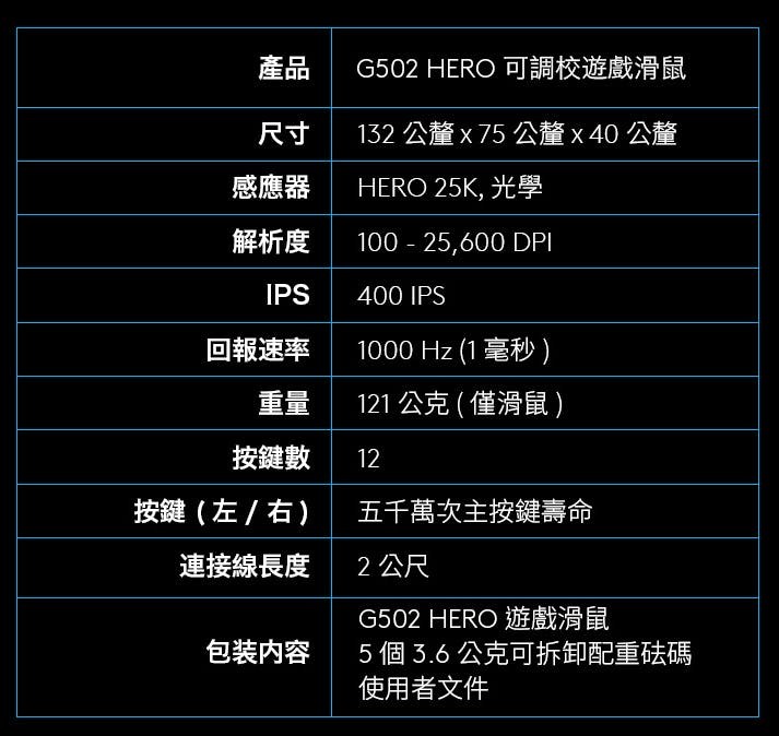 我認為羅技G502 Hero優點在於擁有高階電競滑鼠該具備的高階感應器Hero 25K、11個自訂按鍵還有高階滑鼠才有的配重系統,這樣的規格售價是1490元,在電競滑鼠領域算是便宜。但你得習慣有線滑鼠的線材,至於重量方面可透過配重系統來調整問題不大。